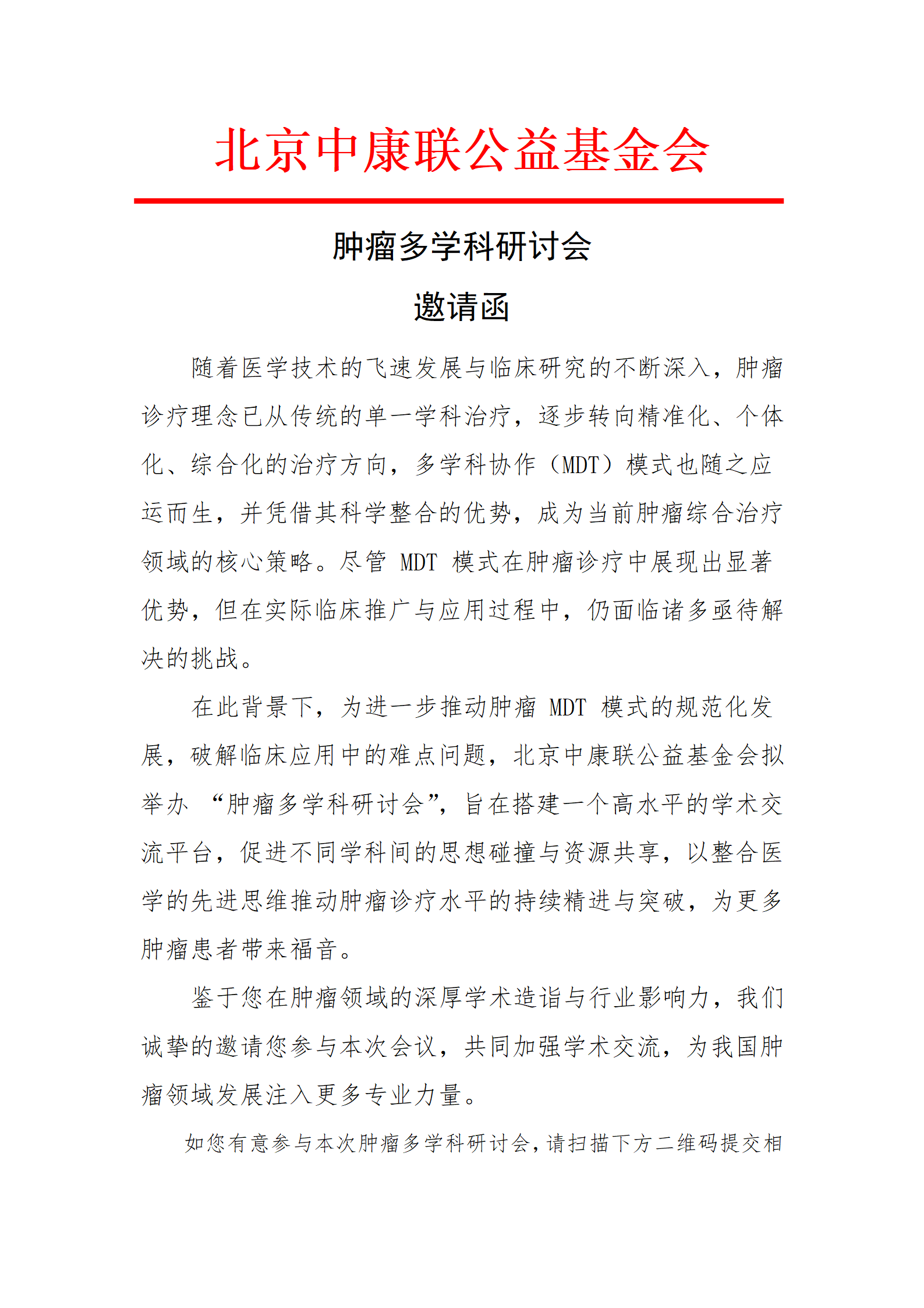 肿瘤多学科研讨会邀请函